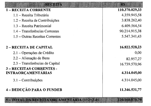 Art. 2º A receita será realizada mediante arrecadação na forma da legislação em vigor observando o seguinte desdobramento e detalhamento nos anexos desta Lei: